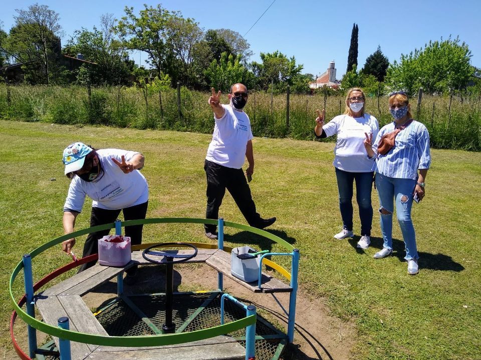 El objetivo de la jornada fue recordar a Néstor trabajando en arreglos, pintura y puesta en valor de 10 plazas en diferentes puntos del partido de Cañuelas. La tarea comenzó este sábado de forma simbólica pero continuará en los próximos días en los casos donde hacen falta reparaciones o mejoras.