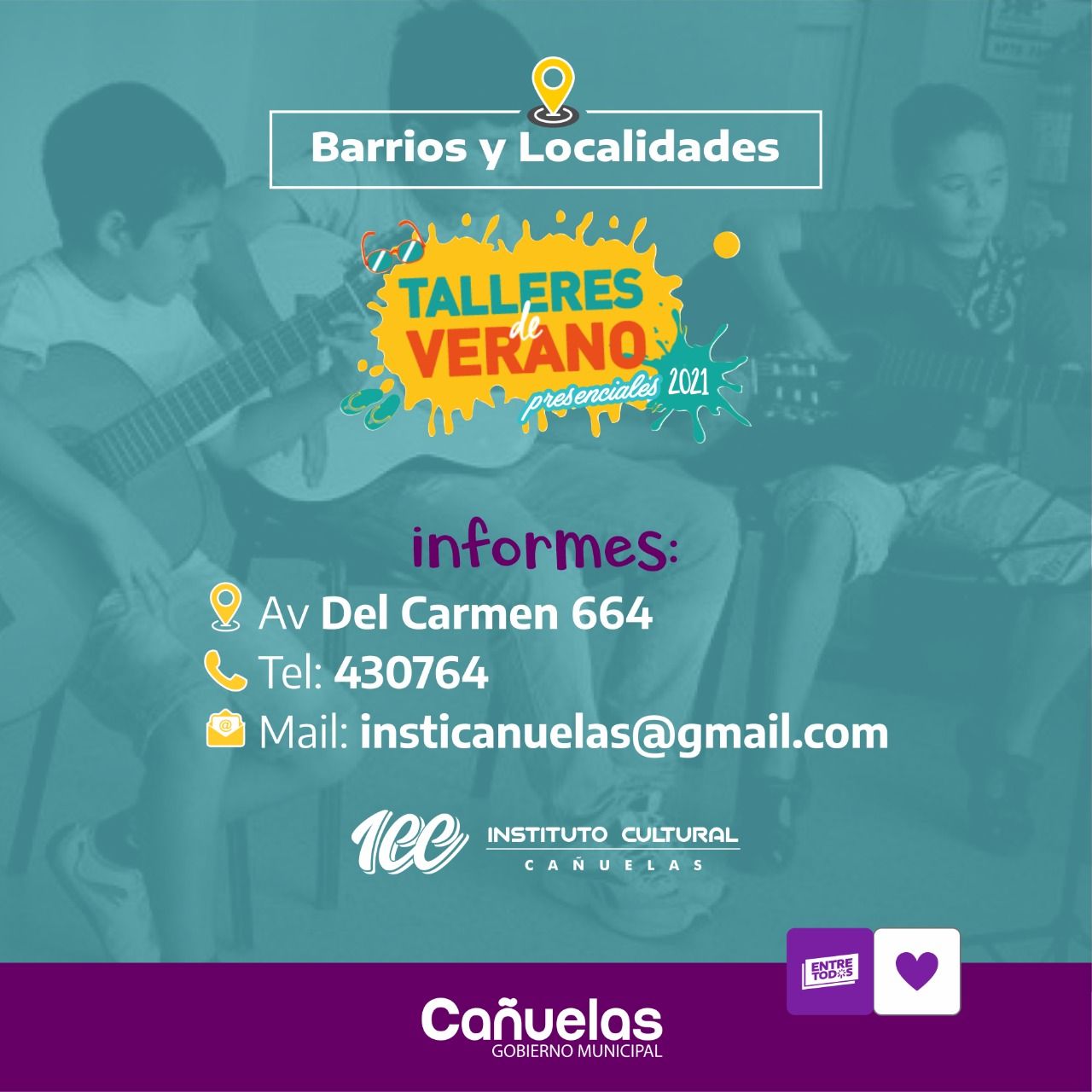 El Gobierno Municipal a través de la Subsecretaría de Cultura invita a todos los vecinos y vecinas a inscribirse a los talleres de verano que brindará el Instituto Cultural Cañuelas en diversos barrios y localidades del distrito.