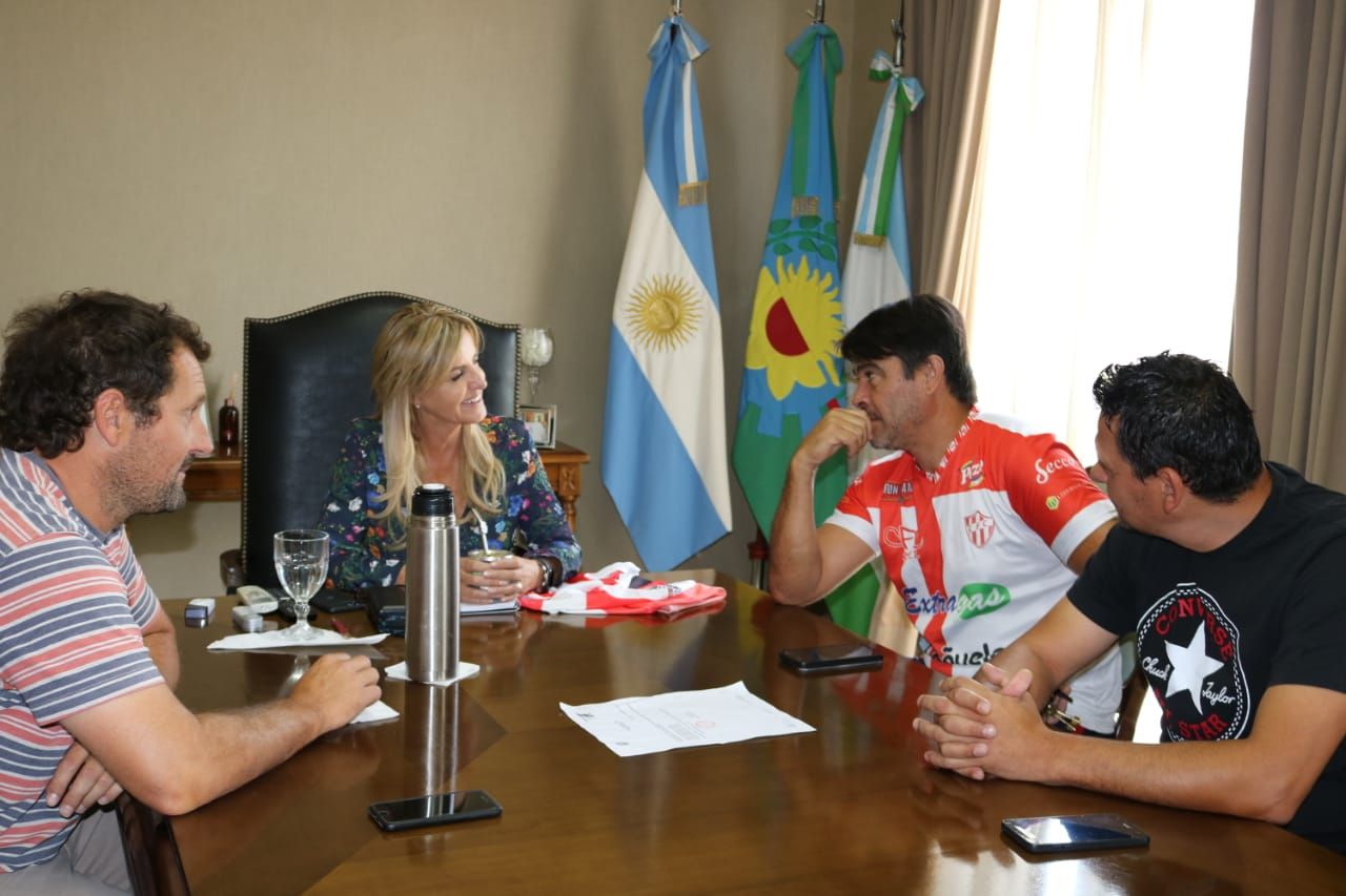 En el Palacio Municipal la mandataria dialogó con los futbolistas Juan José Caeiro, Hernán Ramallo y el entrenador Adrián López sobre los amistosos programados para disputar en el proceso de preparación y sobre los desafíos y objetivos de la temporada 2020.
