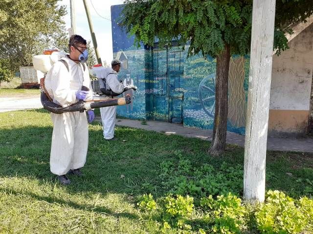 En la localidad de Gobernador Udaondo, se llevó a cabo este viernes un exhaustivo trabajo de fumigación y desinfección en las 96 cuadras que componen el casco urbano, incluyendo comercios, sede de la policía, escuela y sala de primeros auxilios.