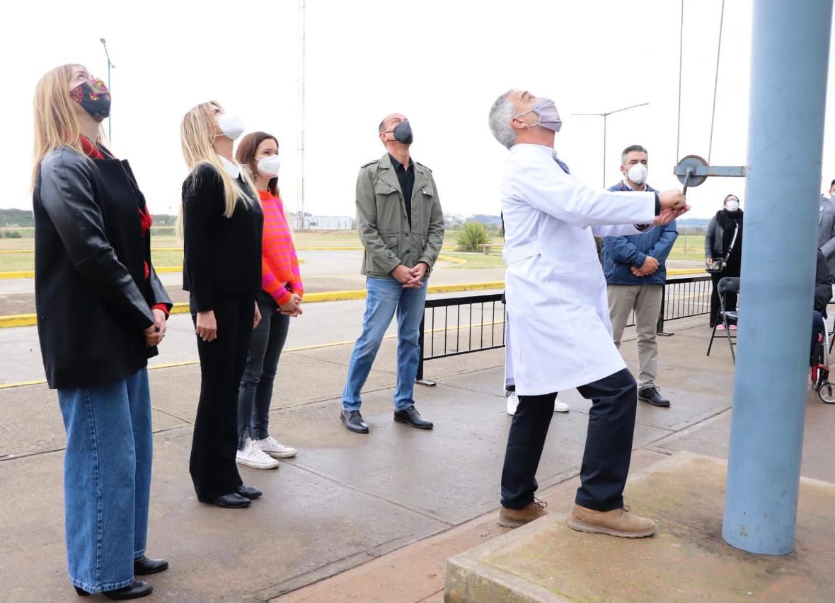 La jefa comunal resaltó la decisión de celebrar la Independencia en el hospital: “no hay nada mejor que estar acá con nuestros héroes, con los médicos y enfermeras de un Hospital que pasó de tener 5 camas, a 57 con asistencia respiratoria y que alrededor de esta pandemia recibió a más de 700 vecinos y vecinas de Cañuelas”.