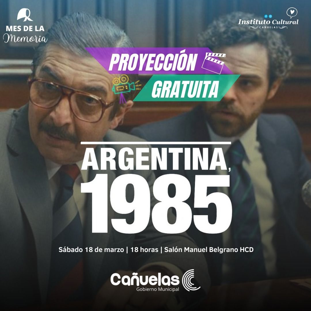 En el año en el que se conmemora el 40 aniversario de la recuperación de la Democracia, y en el mes de la Memoria, Verdad y Justicia, el Gobierno Municipal realizará una proyección abierta y gratuita de la película nacional “Argentina, 1985”, que retrata el juicio a las juntas militares.