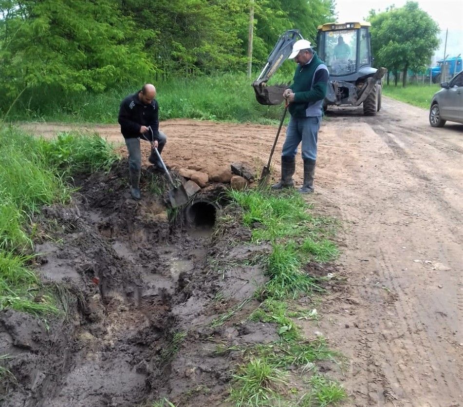 Con retroexcavadora y personal de mano reiniciaron las labores de zanjeo en las calles Brasil, Acuña (entre Larrea y Matheu) y en el Barrio Guzzetti.