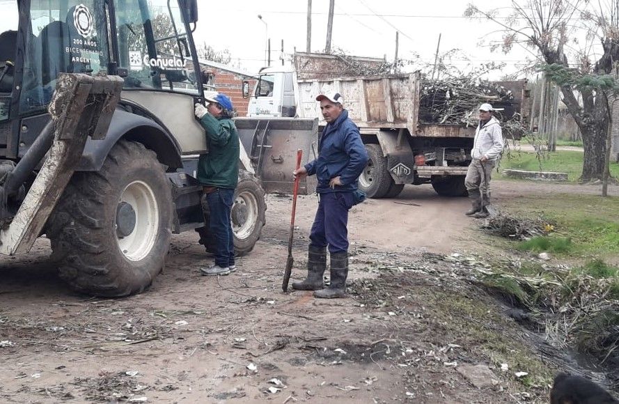 Bajo la coordinación del gobierno municipal, a través de las áreas de Servicios Públicos, Cooperativistas, Espacios Verdes y Defensa Civil prosiguieron las tareas de recomposición de espacios públicos en barrios y localidades; poniendo el foco en las acciones de saneamiento de canales de escurrimiento.