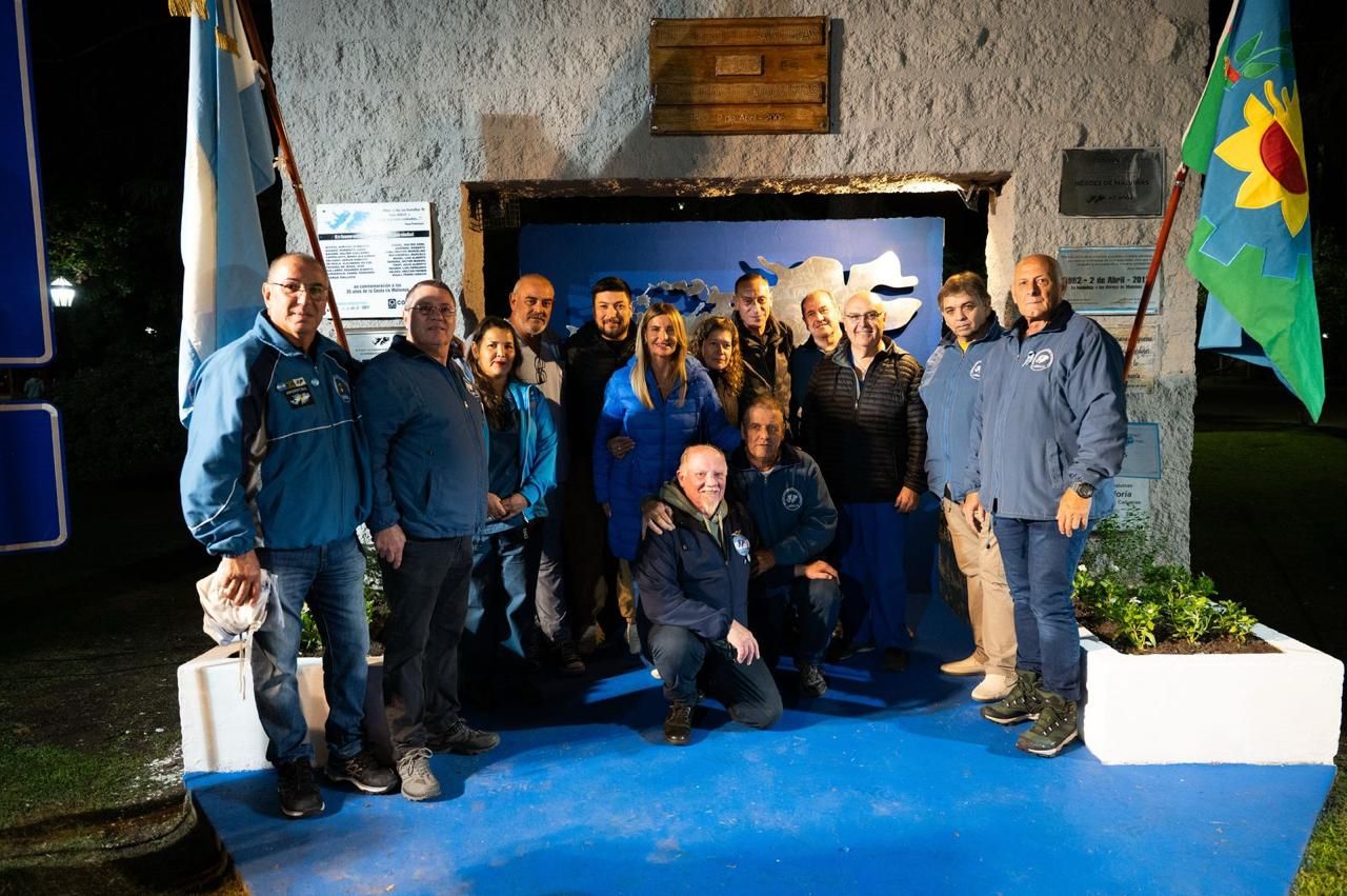 "Mario siempre decía que hay que sembrar en los niños el amor por esa parte de nuestra patria que nos fue arrebatada. Hoy ver aquí a algunos de esos niños ya grandes, que siguen acompañando, es el mejor testimonio de que su misión dio frutos", expresó Marita. En su honor, se descubrió una placa junto al monumento a las Islas Malvinas.