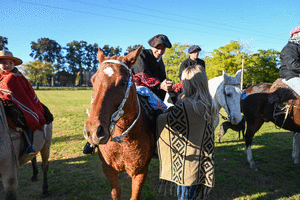 En primera instancia la jefa comunal acompañó desde el predio de la Sociedad Rural el inicio de la "Cabalgata Patria" organizada por Centros Tradicionalistas del distrito.