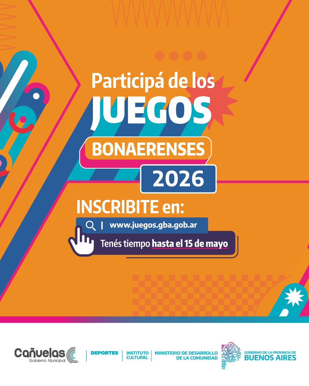 El Gobierno municipal, a través de las áreas de Deportes, Adultos Mayores y Cultura, informa que ya se encuentra abierta la inscripción para la edición N° 35 de los Juegos Bonaerenses, una de las políticas públicas más importantes del país, impulsada por el Gobierno de la Provincia de Buenos Aires, que promueve la integración, el deporte y la cultura en los 135 municipios.
