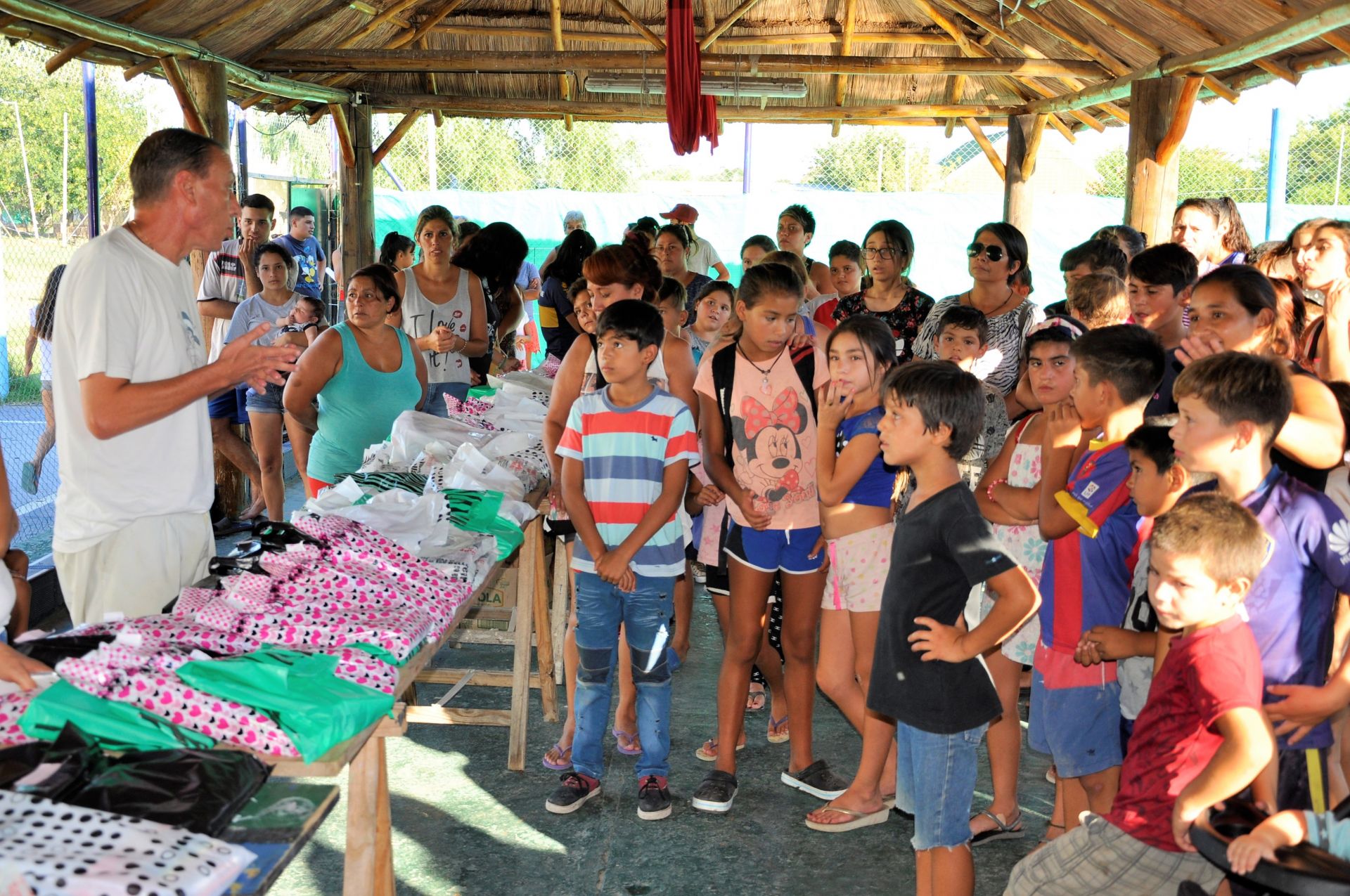 Los menores, acompañados por sus padres y madres, se congregaron en el natatorio para retirar de manos del mandatario un set confeccionado por el Gobierno municipal, que cuenta con los útiles necesarios para poder afrontar el comienzo del período de clases con todas las herramientas de estudio.