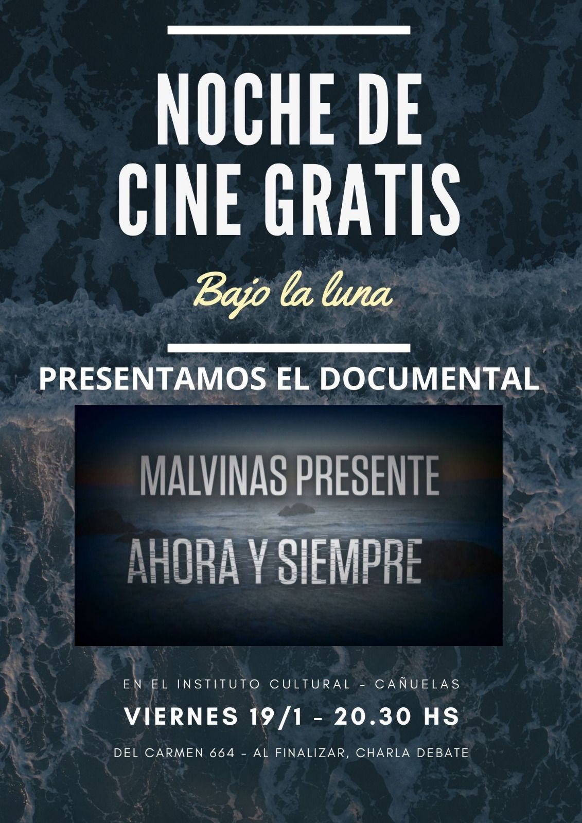 El documental “Malvinas presente ahora y siempre” será presentado este viernes, a partir de las 20.30, en el Instituto Cultural Cañuelas (Del Carmen 664). Cabe aclarar que luego de la proyección audiovisual, habrá una charla debate.