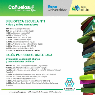Vas a poder disfrutar de stands, charlas, talleres, presentaciones de libros, narraciones y espectáculos artísticos con la participación de escuelas, editoriales y universidades.