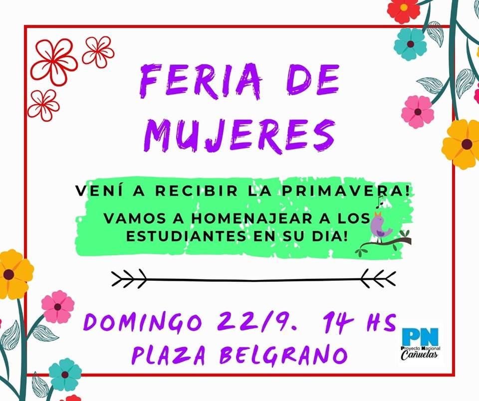 Este domingo, a partir de las 14, se realizará una nueva Feria de Mujeres. La jornada especial se da en el marco del comienzo de la primavera y ante la posibilidad de generar actividades para homenajear a los estudiantes en su día.