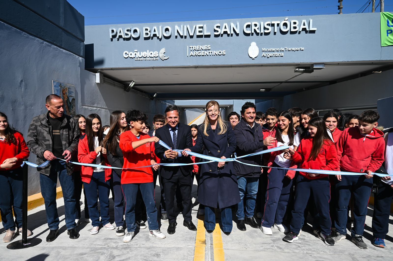El primer paso bajo nivel de Cañuelas fue inaugurado hoy con una inversión superior a los $1.900 millones con destino a mejorar la conectividad, aumentar la seguridad vehicular y peatonal y permitir optimizar el servicio ferroviario. La obra se convierte así en el paso bajo nivel número 12 inaugurado por el Ministerio de Transporte, de los 28 que se están construyendo en la provincia de Buenos Aires.