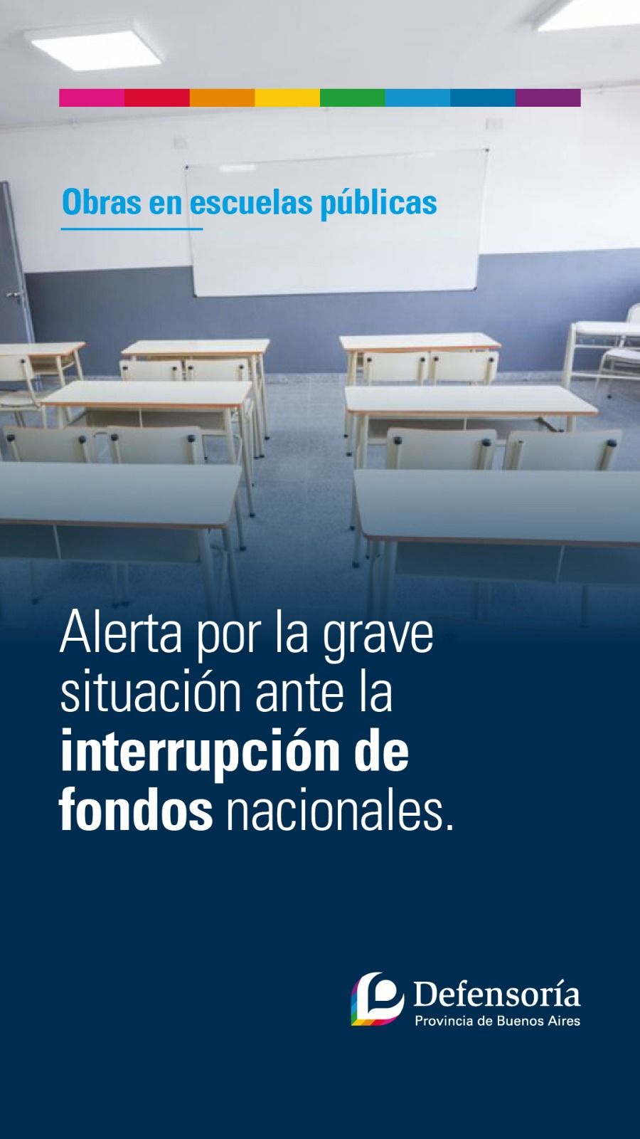 El Defensor del Pueblo, Guido Lorenzino, consideró que la interrupción del envío de fondos para la finalización de estos trabajos “afecta el derecho a la educación actualmente y en el futuro de cientos de alumnas y alumnos bonaerenses”.