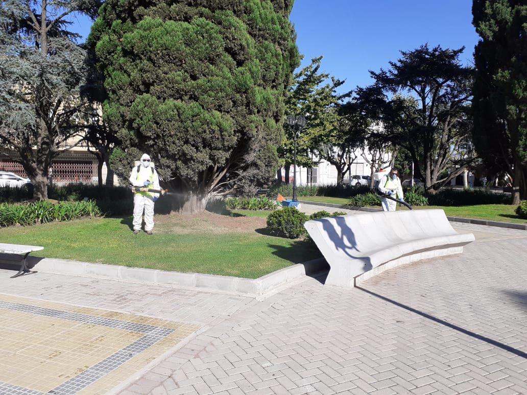 El personal dedicado a los trabajos de fumigación y desinfección le sumó al recorrido que viene desarrollando por barrios y localidades, buscando llegar a la mayor cantidad de lugares en la vía pública y centros de mayor acumulación de personas.