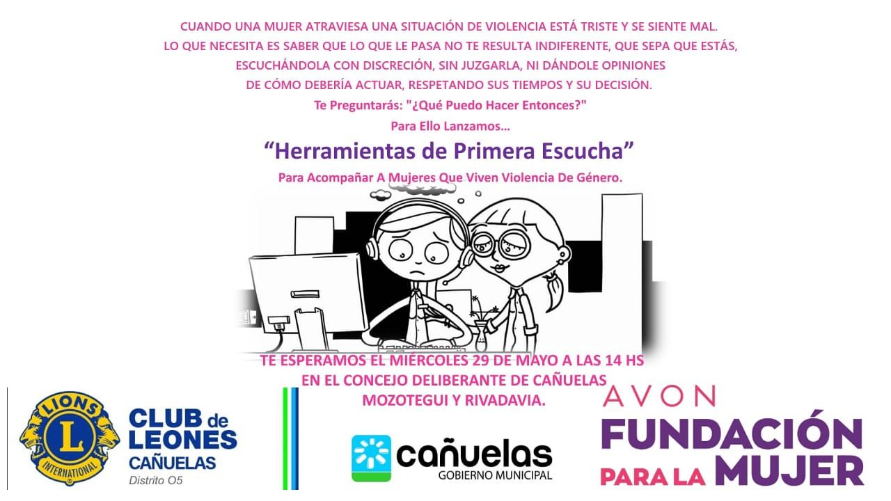 Este miércoles 29 de mayo se llevará a cabo en el Salón Manuel Belgrano del HCD de Cañuelas una charla abierta a toda la comunidad sobre herramientas de primera escucha en temas de violencia de género.