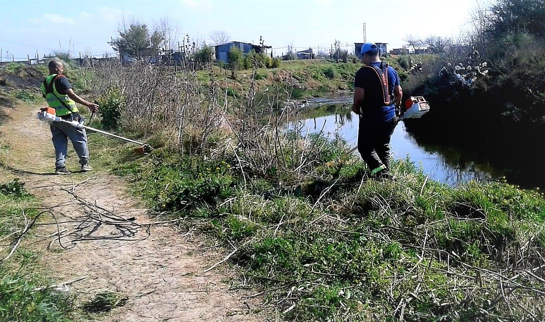 Continuando con las tareas de prevención y atención de las zonas aledañas a arroyos del distrito, la Dirección General de Coordinación de Defensa Civil realizó tareas de desmalezado y limpieza a la vera del arroyo Cañuelas.