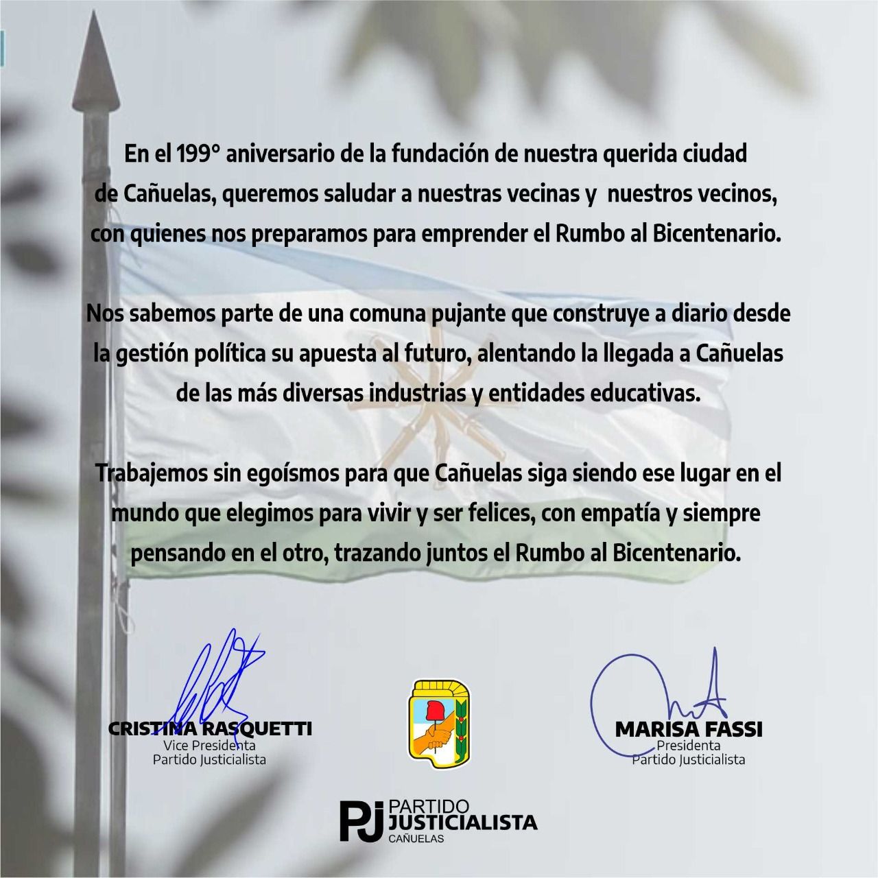 SALUDOS DEL PJ CAÑUELAS EN EL 199° ANIVERSARIO DE LA CIUDAD