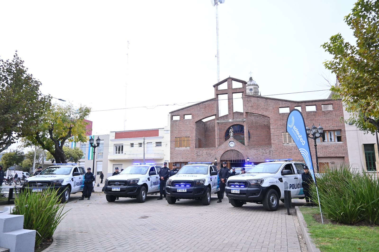 La intendenta municipal Marisa Fassi encabezó este viernes un acto en la Plaza San Martín, donde presentó ocho nuevas camionetas Ford Ranger 0km, destinadas a la seguridad del distrito.