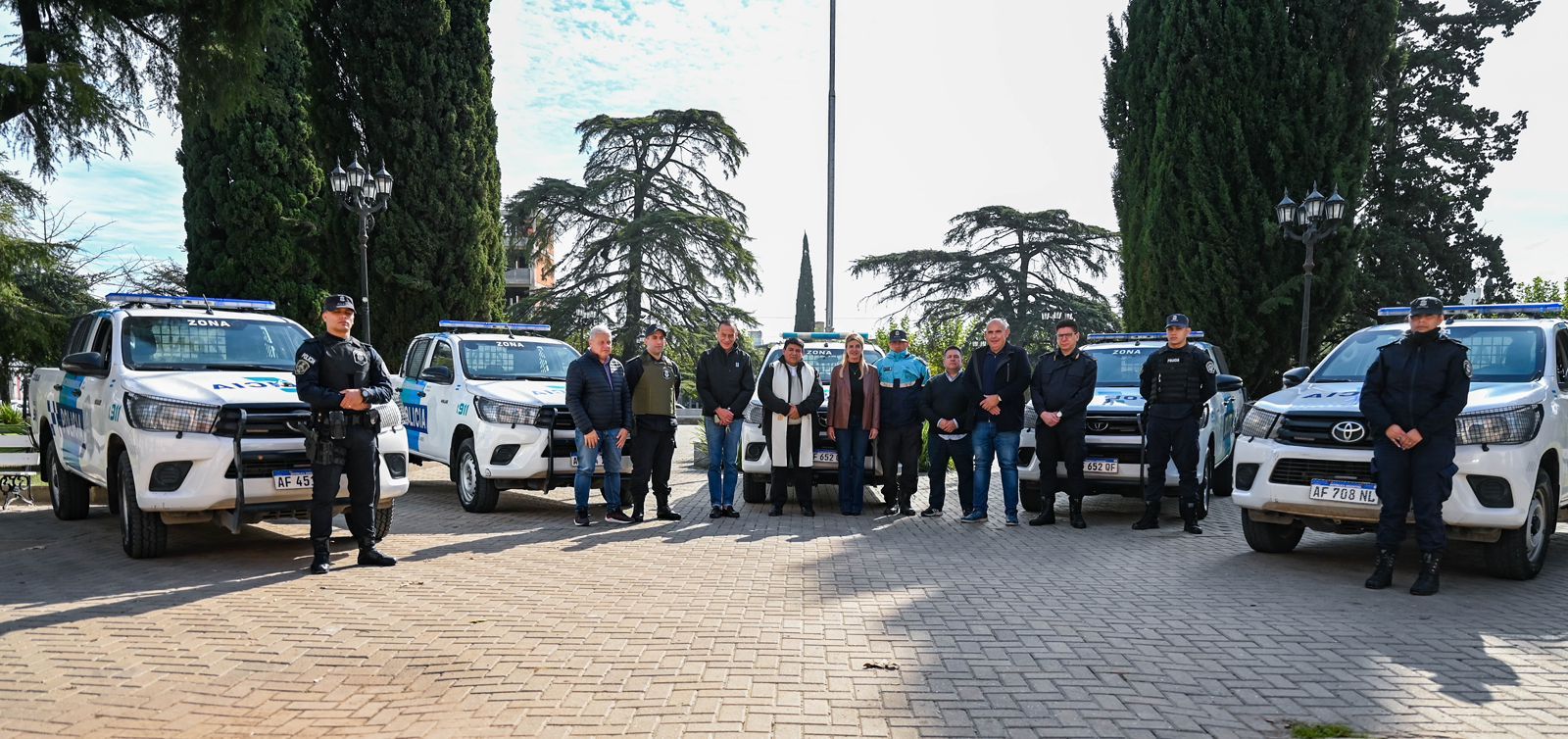 Marisa recibió los vehículos acompañada por el jefe de Gabinete Fernando Jantus, y el secretario de Seguridad Rodolfo Ojeda, además de los jefes de las dependencias policiales que recibieron las camionetas.