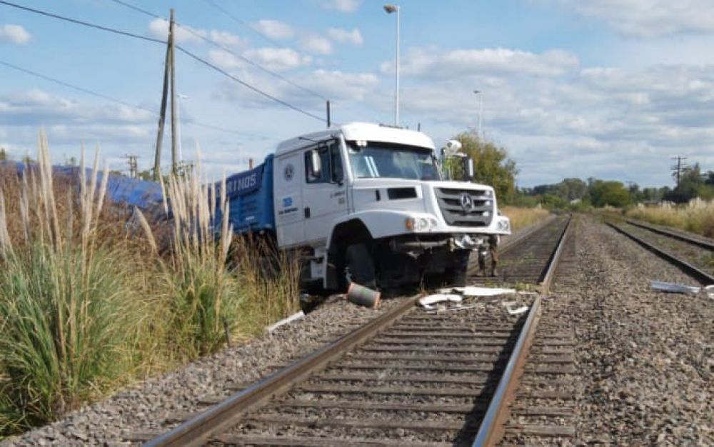 El chofer de un camión perdió el control del vehículo mientras circulaba al parecer por la Ruta 6 y quiso acceder a la Ruta 205 por la bajada del puente y con una maniobra inesperada siguió de largo y terminó sobre las vías del tren.