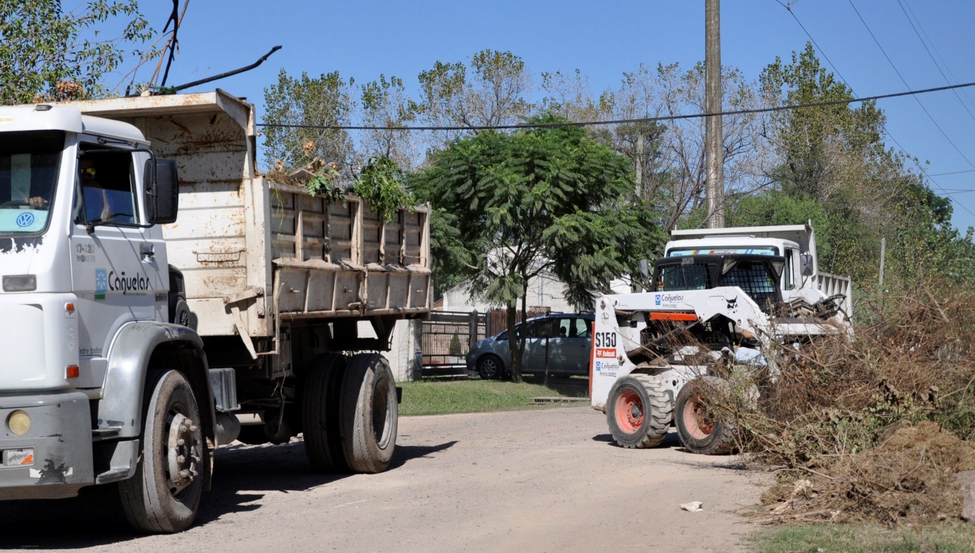 Con personal de mano, minicargadoras y camiones se llevó a cabo la recolección de ramas y residuos sueltos en el centro de Cañuelas y barrios Los Aromos, Libertad y San Ignacio.